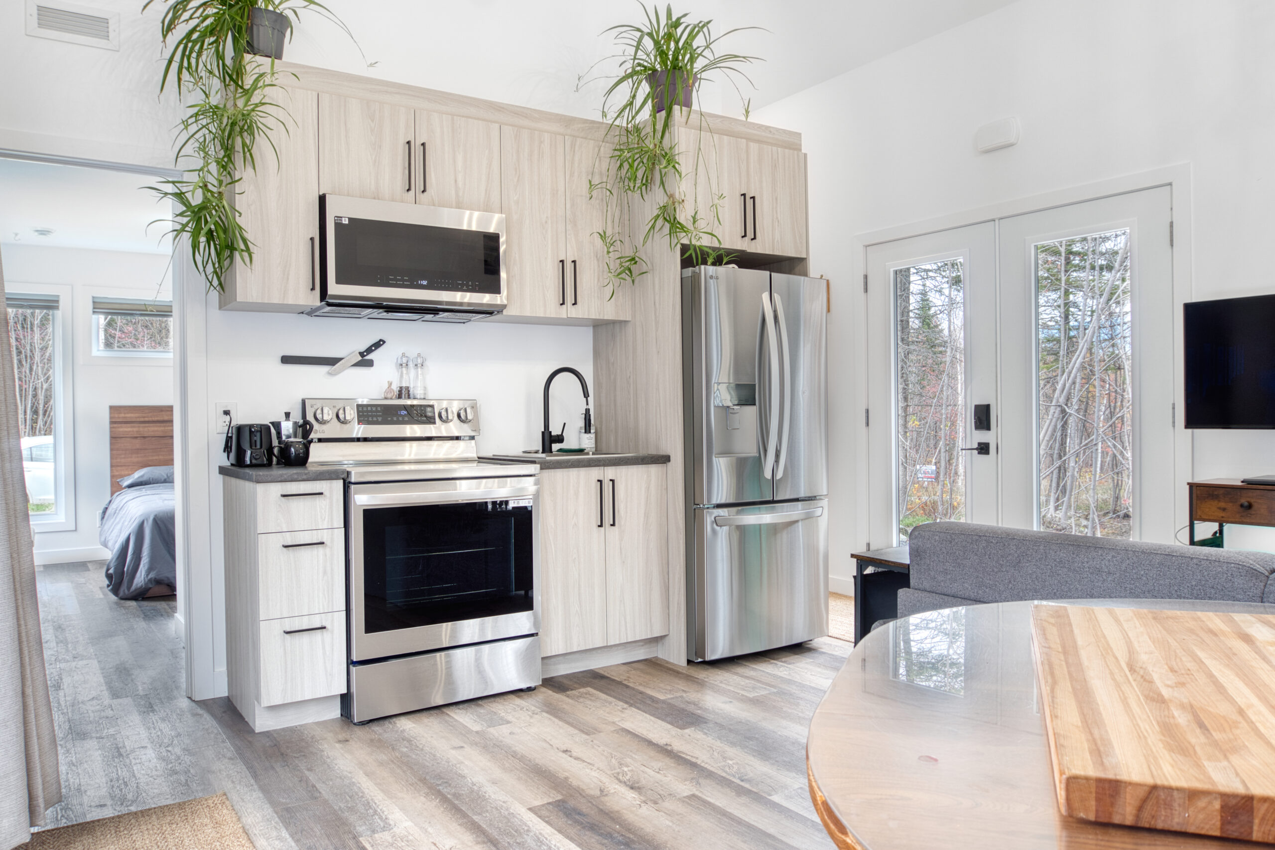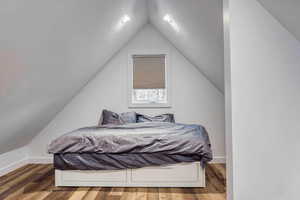 Maison Eadda est une mini maison entièrement équipée, construite en 2025 au cœur des Appalaches. Le rez-de-chaussée accueille une chambre, un salon chaleureux, une cuisine moderne et une salle de bain. Une mezzanine, accessible par une échelle, surplombe le rez-de-chaussée et offre une expérience de couchage unique.